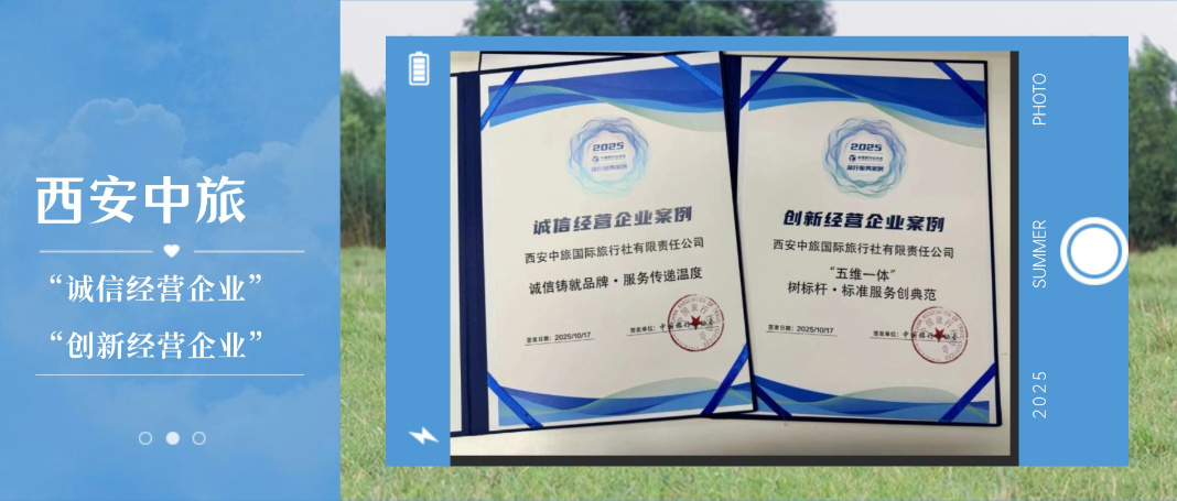 近日,“第八屆中國旅行社協(xié)會旅行服務(wù)案例榜單”正式揭榜,西旅股份旗下西安中旅創(chuàng)建的「誠信鑄就品牌·服務(wù)傳遞溫度」和「“五維一體”樹標(biāo)桿·標(biāo)準(zhǔn)化服務(wù)體系」兩個案例,分別斬獲“誠信經(jīng)營企業(yè)案例”和“創(chuàng)新經(jīng)營企業(yè)案例”榮...