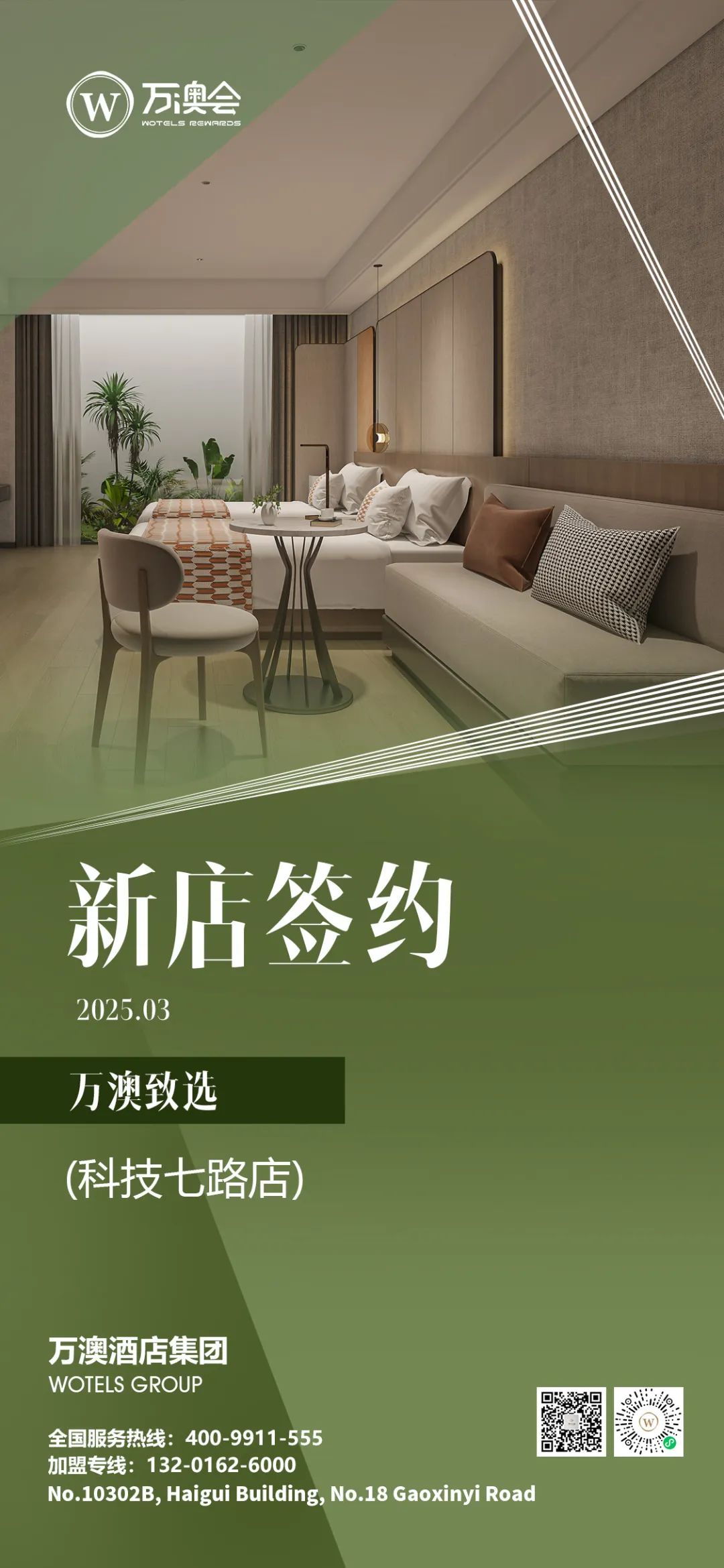 「萬澳致選」是萬澳酒店品牌旗下的“軟品牌”酒店類型,秉持 “酒店升級(jí)就是如此簡(jiǎn)單” 的核心理念,深挖自身優(yōu)勢(shì),擴(kuò)大品牌影響力,從多方面為投資人與加盟商賦能。旨在為商旅顧客打造"簡(jiǎn)約美學(xué)與智能交互"融合的品質(zhì)空間。